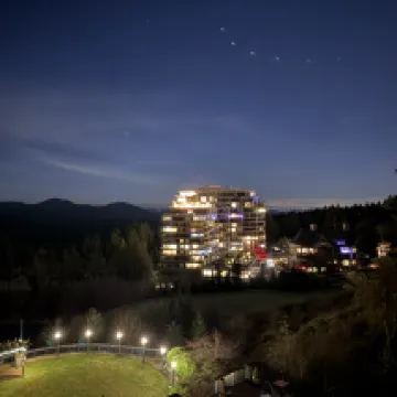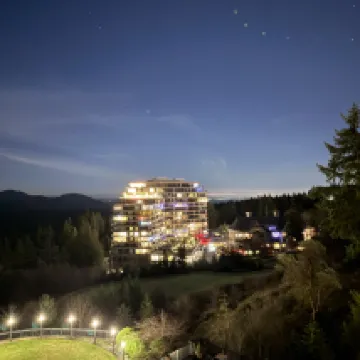Several of us tennis enthusiasts stayed at the hotel for two nights to experience the best indoor clay tennis court in BC. The hotel environment is great, surrounded by golf courses, and there are hiking trails around. The hotel lobby provides free coffee and small desserts, which are very delicious! Have a pleasant trip!