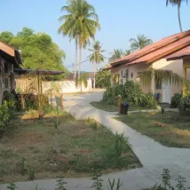 It is tucked away in a quiet corner, away from the main road. I think it takes about 5 mins to get to the main road and another 2-3 mins to get to Chenang beach from the main road. The reception staff were very polite, helpful and attentive to queries. On the first day, there were mozzies in the room which disappeared from 2nd day onwards (not sure if it was due to the vapouriser that I switched on). There is air-con, mini fridge and instant water heater in my room but the air-con & mini fridge were super noisy. There was a constant electrical buzzing sound from the circuit box if the power is on. Since the room is connected to outside, sure to have ants and lizards coming into the room, just have to make peace with them. For linen, I was given yellow-stained sheets & towels like the previous reviews. HOWEVER, when I asked for room service on my 3rd day, I was given white sheets and nicely laundered towels with fragrance!!!