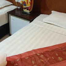 Firstly, the room lacked basic amenities, such as a hairdryer, which was quite inconvenient. The blanket sheet provided was yellowed and appeared old, which made me uncomfortable. The towels were also an issue as they had an unpleasant smell, indicating they weren't fresh or clean.