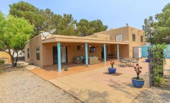 Conveniently located for trips to White Sands, Mesilla, the Mexican border. The house was easily found, and getting to a grocery store, a bank, a pharmacy, a general goods store and even a quilting store was easy, too. The neighborhood is quiet, the house is simple and suited the four of us for the week. We used all three bedrooms. We enjoyed the patio and the views. A good place to stay together.
