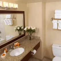 Very clean room but extremely hard mattress and not a lot of amenities, such as no coffee or water bottles in room. We won't stay there again.