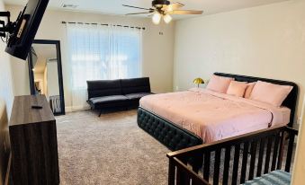 Welcome to this marvelous house in Lawton. This charming property boasts 3 bedrooms, including 2 king beds and 1 queen bed. With 2 bathrooms equipped with amenities like a hair dryer and bathtub, guests will feel right at home. The additional living room space with a cozy sofa bed provides a tremendous area for relaxation. Book now and enjoy everything this house has to offer.About pets:No pets allowed.About children:Children allowed: ages 0-17.About customRules:Please avoid any issues during your pleasant stay. Respond: Within 1 hour. Please, be advised that any extreme or loud noise won’t be tolerated..Failing rule 1 can potentially be subject to guest being asked to leave the premises with no refund possible for the remaining time of their stay.,No smoking of weed/joint or any kind of drogues on premises and anywhere near it. Quiet hours: 10pm to 10AM. Please, clean after yourself!.About smoking:Smoking is not permitted.About events:No events allowed.