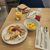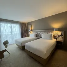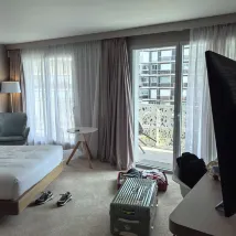 The hotel is not far from the train station, accessible by the AB tram. Located on the harbor, it's not far from the art gallery and cathedral. Some of the sea view rooms I booked were in a good location, but unfortunately, due to weather and tides, I couldn't see the sunset. The rooms are spacious, have balconies, separate wet and dry areas, and are clean and sanitary.
