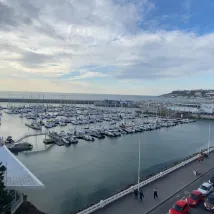 The hotel is near the cruise terminal. The partial sea view room you booked can watch the sunset. It is very close to the art gallery, lighthouse and church. There is a 90-minute cruise project at the pier across the road. You can learn a lot about Le Havre Port by going out to sea to see the scenery and listening to the introduction. The room is very large and the terrace is very spacious. Drinking together at dusk is the taste of vacation