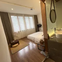 🏮 This hotel perfectly blends rustic charm with modern comfort, its traditional architectural style complementing its intelligent interior facilities. The environment is serene and elegant, with lush greenery in the courtyard, exuding tranquility and elegance throughout. Cleanliness is impeccable; the rooms are spotless, the bedding is pristine and soft, and the bathrooms are sparkling clean, providing a sense of peace and security. The service is warm and attentive, making guests feel right at home. The location is convenient yet peaceful, allowing for easy access to nearby attractions while enjoying a tranquil stay. It is an ideal choice for travelers seeking quality and cultural experiences.