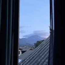 There's also a rooftop on the 3rd floor. If the weather is good, you can see the snow-capped mountains, and it looks exactly like the pictures. Feel free to book, you won't be disappointed!