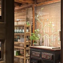 The courtyard is just right with lush flowers and trees, mottled bamboo shadows, cool moss on the stone, and the fragrance of books behind the curtains. All the furniture in the room is old, but neat and orderly. When you touch it with your fingers, the warmth lingers in your heart.