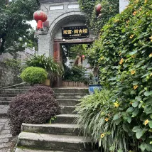 Hotel is at the top of a hill. Owner met us on a Main Street and helped us with our luggage on the first day of arrival. Room is an ancient wooden style. Nice garden with succulents and flowers through the hotel. Although hotel has a hotpot restaurant that is open to public, we were not disturbed by noise in the evening. From the hill top, we can see the mountain afar. Hotel’s breakfast of noodles, eggs, buns and pickles is nice. Porridge is plain. Would be good with some minced meat sauce. Going to ancient town requires a walk down some steps leading direct to the busy and beautiful streets. Overall a nice place. 👍