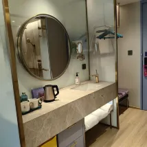 The hotel is very close to Linfen West High-Speed Railway Station, about a 5-minute drive away. The location is fantastic, with restaurants all around. Although close to the road, the windows are well-insulated, so you can't hear the noise from the road from inside the room. The hotel staff are very welcoming and accommodating. The hotel also provides unlimited drinking water and free fruit in the lobby. We were provided with nectarines for several days, which were so delicious that we wanted to grab a few to eat on the way home, but they were sold out. The room was new and clean, with a large TV, an air purifier, and all the other amenities you'd expect. The bed also provided two different pillows. One area where improvement is needed is the difficult-to-turn knob on the shower faucet, but this is a positive, and the hotel is still highly recommended.