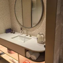 The facilities were impeccable, and the cleaning was spotless. It's worth mentioning that the bathroom's washing and sleeping areas are parallel and separated by a wall, which is a nice touch.
