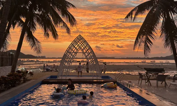 前台的哥哥們超級nice,超級熱心,搬行李等等,基本上有求必應💪服務態度超級棒👍店裡乾淨整潔,還有電梯真的超級方便,我們住的666號房直通泳池,泳池外面就是沙灘🏖正好遇到前台哥哥清潔泳池,把泳池洗得乾乾淨淨。還可以使用廚房,還會提供嶄新的趕海工具和槳板,小孩特別高興,兩娃晚上趕海到12點,一大早又趕海到退房,真的是一個寶藏民宿,小孩説下次一定要再來,還讓我給十星好評⭐⭐⭐⭐⭐⭐⭐⭐⭐⭐