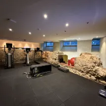 The first floor houses an area for visiting the historical site and a basic gym.