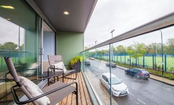 The nearest airport is London City Airport, just about 20 mins from hotel by car (8.0 km) away.Which airport is closest to Spacious, modern 2 double bedroom 1st floor flat in Mile End in quiet park?