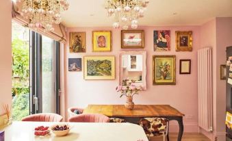 Beautiful, colourful, decorative, girly, floral, artful home with incredible details. and plush furnishings. 2 bed, 2 bathroom over 2 floors. Patio garden.