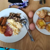 We have stayed at the Hampton many times whilst visiting London and this time was extra special as it was my husband’s 70th birthday. Balloons, cake and Prosecco were left in our room making it a lovely surprise for him on arrival. As always, the breakfast was delicious with plenty of choice from pastries to a full English and the waffles are delicious!