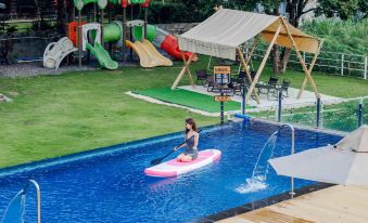 孩子太滿意了,泳池,泡池都很大,房間也超大,不出門還能在房間比賽跑步😂
