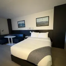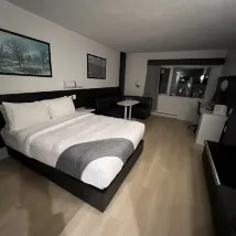 The hotel location is absolutely perfect. They have free parking and it’s secured in a card only access area. And the nearby subway station is located only a 10 min walk away, and connects you to Montreal downtown within 2 stops (6 mins or so). This made it very convenient to leave the car at the hotel and transit to the main parts of Montreal and explore the city stress free, not having to worry about one way roads and parking. The room itself was nice, and the breakfast in the morning was pretty good as well. Their coffee machine is incredible and is available 24-7 which was a nice touch for those late night pick me ups. Overall highly recommend for anyone looking to stay in Montreal but avoid the overly expensive and crowded areas.
