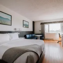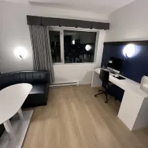 Beautiful hotel! Well located near Montreal. The room was spacious with all the amenities (I lacked nothing and there was even a dinette area and a desk with a computer). The included breakfast was very convenient. The room was cleaned daily with new towels. Private parking secured by a barrier.