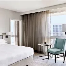 The room was small, but the facilities were new, clean, and aesthetically pleasing. It was perfect for adjusting to jet lag. The breakfast was also excellent, and there's a Starbucks in the lobby. In the evenings, you can order food or dine in the lobby, which is very convenient. The airport shuttle buses are frequent, so you barely have to wait. Every time I come to LA, I book this hotel as my first stopover.