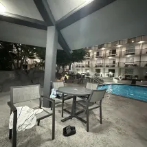 location right by the airport—ideal not only for layovers but also for exploring Los Angeles if you have a rental car. Hotel parking is pricey at $67 per night, but the nearby Airport Spectrum garage next door was only $18 when booked through SpotHero. I loved the pool area!