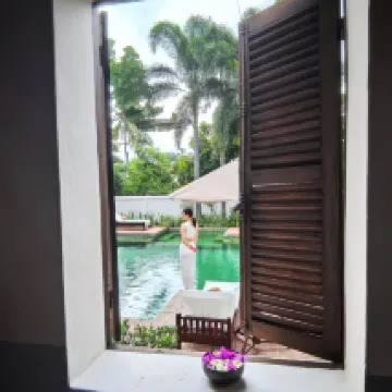The design, decoration and layout of the entire hotel are very Southeast Asian. The bedding is also very comfortable. One of the two swimming pools is shallower and warmer, and the other narrower swimming pool is deeper and colder. The service was OK when checking in, and we also gave a tip. Everything was OK until I had breakfast and found out that one of the waitresses in the restaurant was discriminatory or pretending to be smart. I communicated with her in English throughout the whole process about what I ordered and consulted about what I didn't understand. As a result, the food I was served was short of weight, and the food I ordered was not the same as the plate. The whole experience was the most regrettable experience, which ruined so many good experiences. And later I found that there was a Chinese menu, but the service staff did not take the initiative to give it to us. Lao people feel shy or something. Anyway, the waiters who received us were enthusiastic and some kept avoiding us. It was inexplicable. On the first day of going out, I found that 300 yuan was missing from my wallet in the room on the same day. Although I am not sure whether it was taken by the hotel staff, I still remind people who go there to pack up their valuables. When you go out shopping, you must be careful when you meet people who can speak Chinese, whether they are compatriots or foreigners. They think that Chinese people have a lot of money and are stupid, or they are too generous and will rip you off. Secondly, you can bargain at night markets and morning markets.