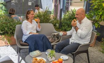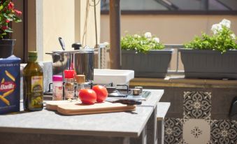 2 night stay to explore Lucca and Pisa on route to Viareggio. Excellent value for money, very traditional art deco style, we booked the room with an outside terrace which was lovely to have an outside space in the morning and we had a visit from a Hummingbird which was amazing. Spotlessly clean everywhere and the hosts were lovely and good air con. Literally 2 - 5 mins walk round the corner to the train station which made our stay easier and right across from Lucca wall - 10 minute pleasant walk into the heart of Lucca. We appreciated the snack box and the hot drink machine credit (Lavazza coffee). Would definitely recommend as an alternative to staying inside the walls.