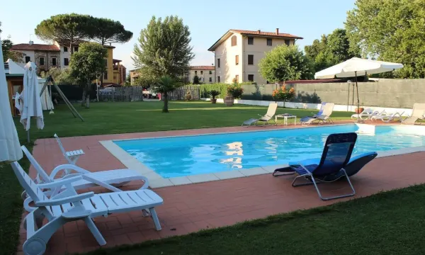 Posto a circa 2 km da Lucca è un ottimo punto di partenza x visitare la città, la Garfagnana e x rilassarsi al ritorno a bordo piscina; il personale è gentile e cordiale, ciao Samantha! Nella matrimoniale il bagno è davvero microscopico, senza posto x il bidet e gli asciugamani un po’ vecchiotti, ripide le scale x salire ai piani; buona la colazione, ma in 5 giorni sempre uguale, mai una fetta di pane fresco o di torta….
