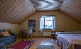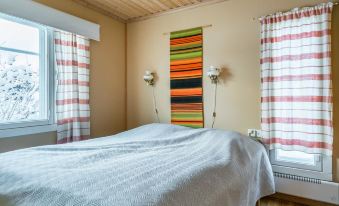 Located 20 km northwest of Ikaalinen, Lake Kyrösjärvi 60 m, with a shallow clay bottom, own pier, and a rowing boat. The wooden cabin, built in 2004, features a kitchen with a dining table for four, a bedroom with a double bed, a living room with a sofa set, and a heat-storing fireplace. The sauna has a wood-burning stove, and the washroom includes a WC and shower. On the upper floor, there is a double bed, a single bed, and a sofa bed that converts into an additional sleeping place of 140x200 cm for two. A travel cot is also provided.