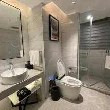 The room facilities are very newly renovated, and the smart home furnishing throughout the house is very good and convenient, with automatic curtains, automatic lights, automatic air conditioning, a super large TV screen, and the central air conditioning is very powerful.