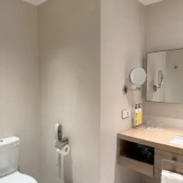 There were 5 of us so we booked a family room and a deluxe double room. Requested for rooms at non-smoking floor but unfortunately the hotel did not get the instruction from trip.com. As the hotel was fully booked and we reached the hotel quite late at night, our deluxe double room was assigned to a smoking floor. We requested the front desk staff to put a note to change our room the next day when there is one on a non-smoking floor. The next day we got a change of room to the same floor as our family room. very pleased with the excellent services provided by the hotel staff. Only improvement point is there should be spare toilet roll and box of tissue in the toilet.