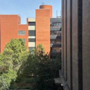 Very close to bus 203 for the train staion and the airport. Walking is not a problem for us so the location is pretty good. It took about 45 min to walk through El Retiro Park to Museo Nacional Centro de Arte Reina Sofía. Palacio de Cristal is closed but the water feature in front of it is very cute. The way back along P.º del Prado at night is pleasant too.