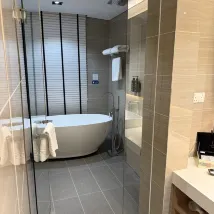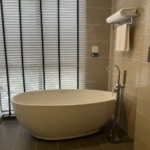 The room was so beautiful with the bath tub. Unfortunately, when film the bath tub, the water keep flowing out. The aircond also not cold, trying calk the service but no one pickup. It was a beautiful hotel but need improve on the service, make sure all work perfectly before assign customer to the room.