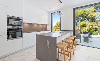 • Modern Kitchen: The state-of-the-art kitchen features a marble island and premium appliances, seamlessly connected to a stylish dining area where you can savour homecooked meals alongside breath-taking views.