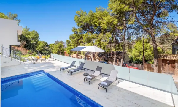 Nestled within the protected pine forest lies a collection modern homes called, Villas Pinares de San Antón which offers an extraordinary escape for families or groups of friends seeking a blend of tranquillity, sophistication, and vibrant city life. Perched above Málaga’s skyline, this villa boasts panoramic views of the serene mountains, the bustling city, and the shimmering Mediterranean Sea.