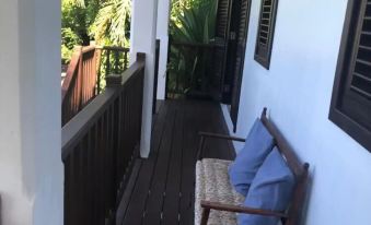 Moringa villa consists of three levels. The top level is a spacious tiled and decked terrace with a shared infinity salt water pool, gazebo, covered area and outdoor shower. The middle level is where Studio One and Studio Two are located; the lower level is a secluded deck area with a lounge area and garden.