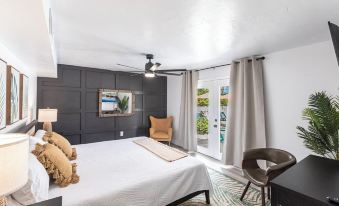 Entry level - Primary bedroom (king) and bathroom w/ pool access, Kids living room (queen sleeper sofa)