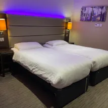 Checked into our room, wasn’t expecting much due to the price but there was stuff all over the carpets in which you could tell the room had not even been hoovered. Marks around the bath where previous guests have placed their shower items - again not cleaned properly. Double occupancy booked but only given 1 towel in the room which we didn’t realise until the morning when we had a shower. Shower head in the bathroom was broken and actually fell off completely mid shower causing injury to my partners foot.