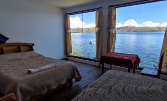 Scenic Views: Rooms feature unique lake views, allowing guests to see sunsets and hear gentle lake waves, with beautiful views of Lake Titicaca including the sunset. The location is tranquil with a private port for easy boat access.