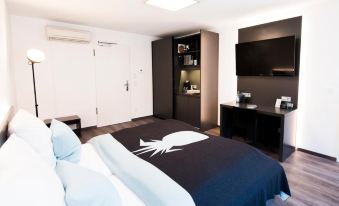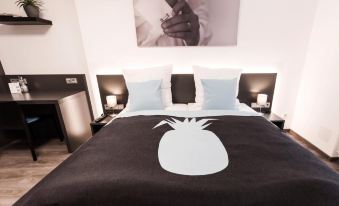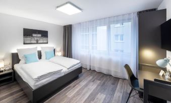 Kontaktloser Check-in, sauberes zweckmäßiges EZ mit Bad und sogar Balkon - offenbar alles noch recht neu. Bett bequem, allerdings bei Bewegung knarzend. Schicke Dusche, aber das Wasser läuft unter der Duschtüre heraus und setzt den Boden unterm Waschbecken unter Wssser. Abstellmöglichkeit fürs E-Bike im Innenhof. Praktisch: zentrale Lage in der Innenstadt.