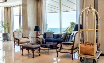 Each room is fitted with a TV, a mini-bar and private bathroom facilities. Some include a spa bath, a work desk and a dining table. Guests can opt between views of the sea, partial ones or views of the city.