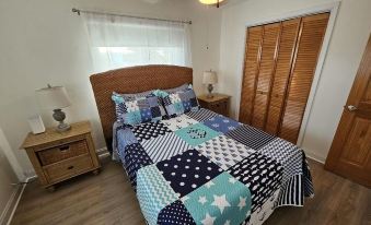 The main level has two bedrooms: One canal side with a king bed, TV and sliding glass doors to access the outside; the second has a queen bed. Our lower level, which is accessible from the outside, has a full and twin beds, a seating area with a TV and a little serving station with a microwave and small refrigerator to hold some essentials.