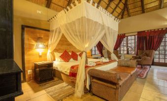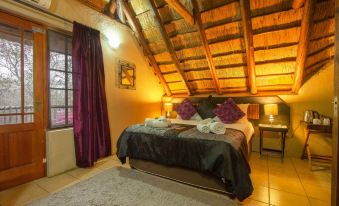 The Lions Den is by far the most luxury room in the lodge. This is also the honeymoon suite. It is larger than the other rooms . It is complimented by a comfortable lounge area with views on the African bushveld. Don't be surprise if a zebra or kudu peaks through the french door. This room is air-conditioned for your comfort! The summer months can get extremely hot. A huge spa bath contributes to romantic moments.