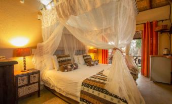 This room is spacious and can easily be switched between a twin room and a double room. Named after the curious warthogs that would wander into the room before the veranda had railings! They can't get in here anymore, but still come right up to the veranda's edge
