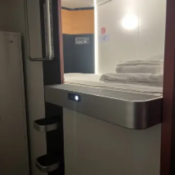 I had an unexpected overnight stay in Matsumoto and was quite pleased. The room was very clean, and I slept really well. It was quiet and comfortable – the sleep quality in this capsule room was comparable to a single hotel room. The only slight drawback was that it was a bit hard to find. The lighting wasn't great at night, and I walked around for quite a while before I found the entrance. There was no one around late at night, which made me a little uneasy – maybe I'm just a bit timid (haha). However, once inside, the facilities were excellent, and the staff were friendly. Overall, it was a very good experience, thumbs up!