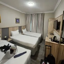 The hotel is quite outdated and lacks several essential amenities in the rooms. I requested an iron and had to call three times before one was finally delivered—unfortunately, it was broken. The doors are old and provide little sound insulation, so conversations and noise from the corridors are easily heard. The only positive aspect is its convenient location, just a 5-minute walk from the Haram.