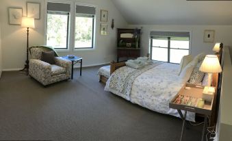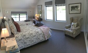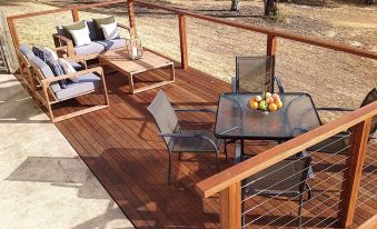 Sink into comfy chairs in front of an open wood fire on chilly nights on the covered rear verandah or cool off under the ceiling fan while alfresco dining in warmer weather.