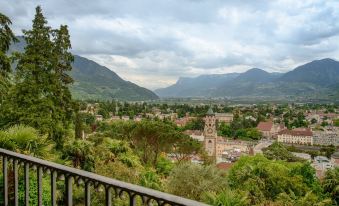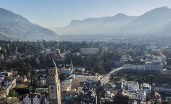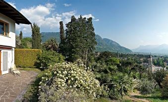 On the terrace you can enjoy a wonderful view over the city of Merano and the surrounding area. In the immediate vicinity is a family run guest house where you can have breakfast, lunch and dinner. A little further away is a typical, traditional restaurant with a cozy atmosphere. Below on the Tappeiner promenade is an idyllic Caffe restaurant.