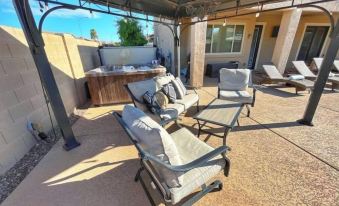 Our family came to Mesa to visit family who just moved to the town. The house was less than 2 miles away and had everything we needed. My kids enjoyed the hot tub and heated pool. A surprise were the fruit trees in the back. It was fun to use the juice machine for them. The bedrooms were perfect and very cozy for a family of 4. We would stay here again!
