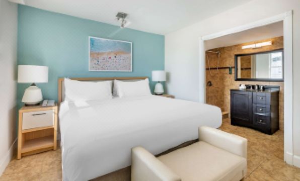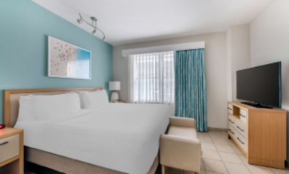 As a longtime Hilton Gold Member, when I entered the room I was surprised at how cheap it looked. I have stayed in much nicer rooms in Hampton Inns and for a lot less money. The furniture was dowdy, the view was the windows of another hotel so the shades had to be drawn the whole time and there were cracks in the glass of the picture above the bed. I immediately took a photo, but more on that later. As it was chillier in Miami Beach than I expected i was happy to see they had a rooftop jacuzzi. But, when I got to the roof it was closed for renovations. It would have been great to have been given that information at check-in. I then read that there was jacuzzi in one of the other buildings. Boy was that rough looking. There were a few lounge chairs that had rips and tears revealing the dirty foam underneath. I decided to brave a sit down only to find that water would deep out of the tears which soaked my pants. The jacuzzi was extremely average. Small, lukewarm and no way to turn on water jets. When I finally layer down to sleep I looked forward to a relaxing enjoyable sleep only to discover there was yappy little dog in the connecting room that woke me up numerous times throughout the evening. Unfortunately my sleep was the opposite of relaxing. Finally in the early morning I had enough and called the front desk to complain. The woman I spoke to seemed so nonplussed about the situation. Had she gotten other complaints about the same dog? Is this a common occurrence at this hotel? Or possibly she just didn’t care. No one ever contacted me to apologize or see how I was afterwards. Then later on I began to notice the smell of pet urine. So apparently this dog was also peeing in the room. When I returned from a walk in the beach I noticed that the door to the dog room was open and there was some sort of dehumidifier there. My suspicions were validated. Again, no one checked in with me. And let me say again, I am a Hilton honors Gold member. So much for loyalty. When I returned home from my disappointing stay I received a receipt that revealed I had been charged $25 for a broken picture frame. After a frustrating call with Hilton customer service I was told it would be all taken care of and that someone higher up would contact me. A couple days later they did only to tell me they were still charging me for the broken glass. Customer service has declined at Hilton quite a bit over the past few years but this was a new low. I guess it’s time to move to another brand. I hear the Marriot loyalty program is quite good. I guess I’ll try that. And I’ll never stay at this dingy property again.