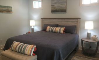 This cottage has an open layout with all bedrooms and baths on one-level. The Master Bedroom is en-suite with a King Bed and walk-in shower, and opens into a large screened porch. The other two bedrooms have Queen Beds and share a bathroom with a bathtub/shower combo. Kitchen, Dining, and Living Room are all open concept, with lots of seating options. There is also a back patio with grill and fire pit, as well as open yard space, so plenty of options to enjoy the outdoors!
